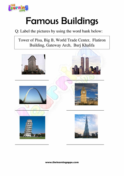 Do you want your children to discover and learn more about famous buildings? With the help of these free sheets of famous buildings for kids, you may now accomplish it. Printable famous buildings worksheets for grade 3 activity 4 allows your child to improve their fine motor skills.