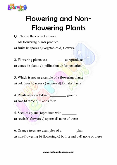 Flowering and Non Flowering Plants Worksheets for Grade 3 – Activity 6 View All Worksheets