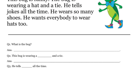 Download and try our free printable Funny Bug comprehension worksheets for grade 1. This Comprehension worksheet is the best way to engage your child in learning.