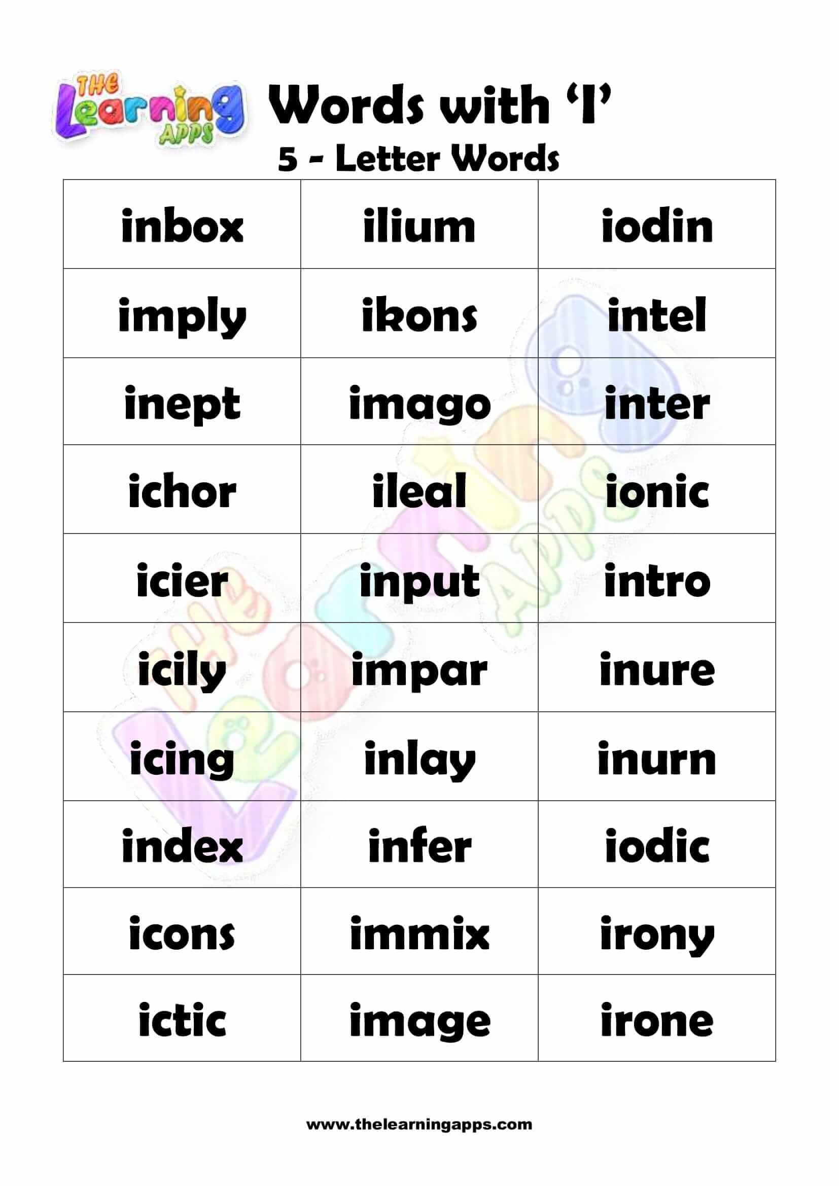 Download fergees printbere wurden fan 5 letters dy't begjinne mei I. Stel bern foar mei dizze Alfabet-wurkblêden foardat se begjinne mei harren oplieding. Besykje no It is fergees!