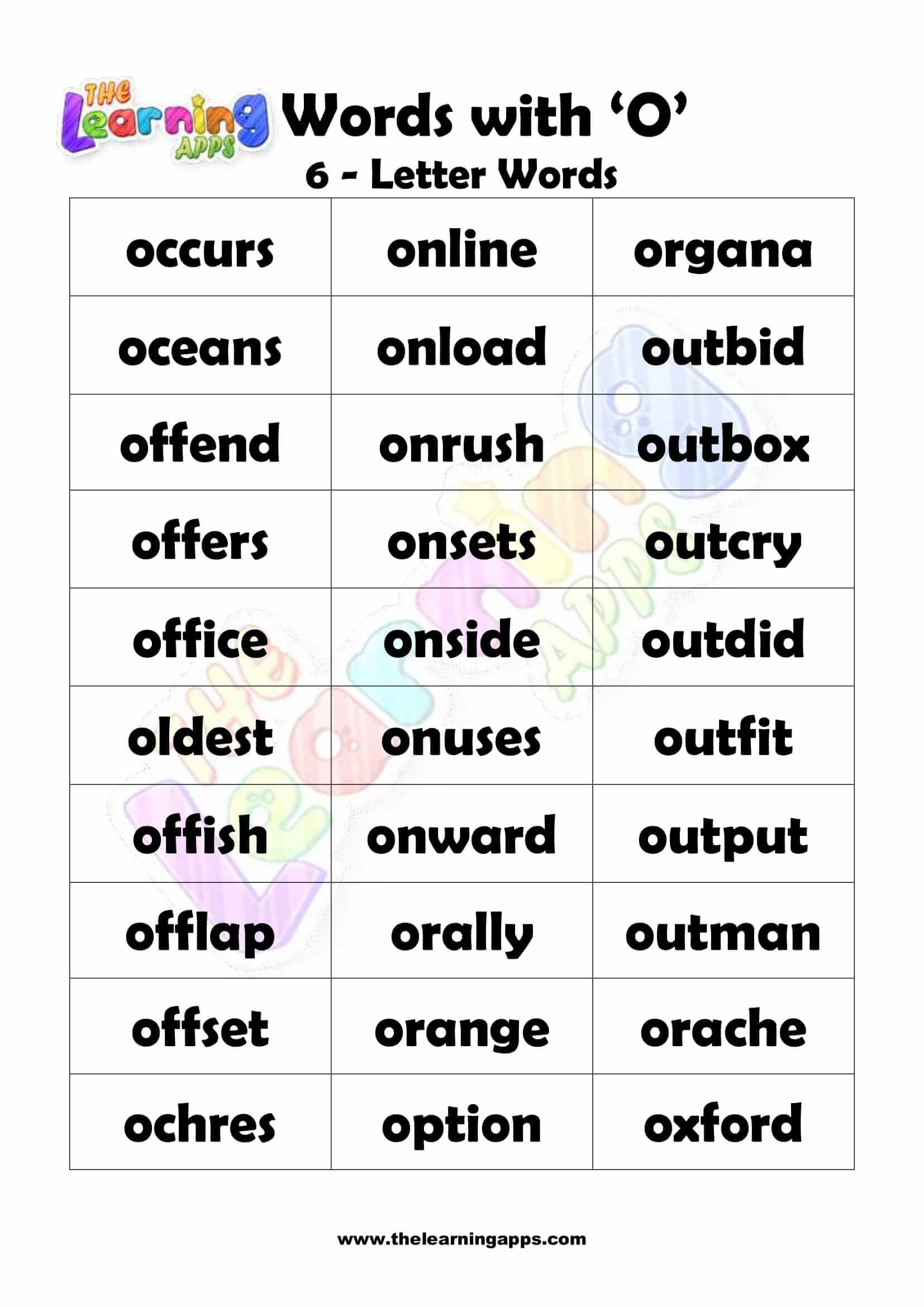 Download fergees printbere wurden fan 6 letters dy't begjinne mei O. Yntrodusearje bern mei dizze Alfabet-wurkblêden foardat se begjinne mei harren oplieding. Besykje no It is fergees!