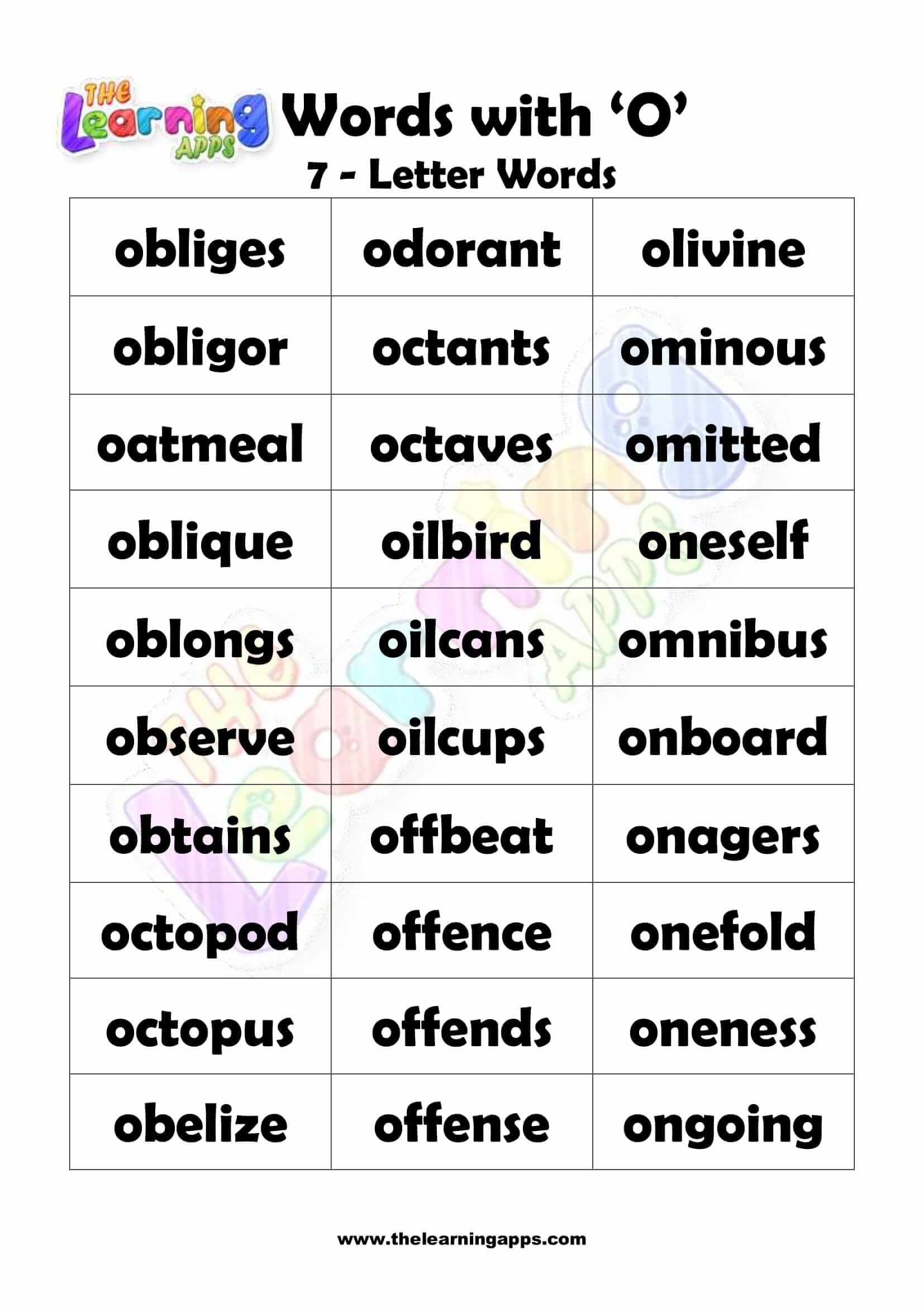 Download fergees printbere wurden fan 7 letters dy't begjinne mei O. Yntrodusearje bern mei dizze Alfabet-wurkblêden foardat se begjinne mei harren oplieding. Besykje no It is fergees!