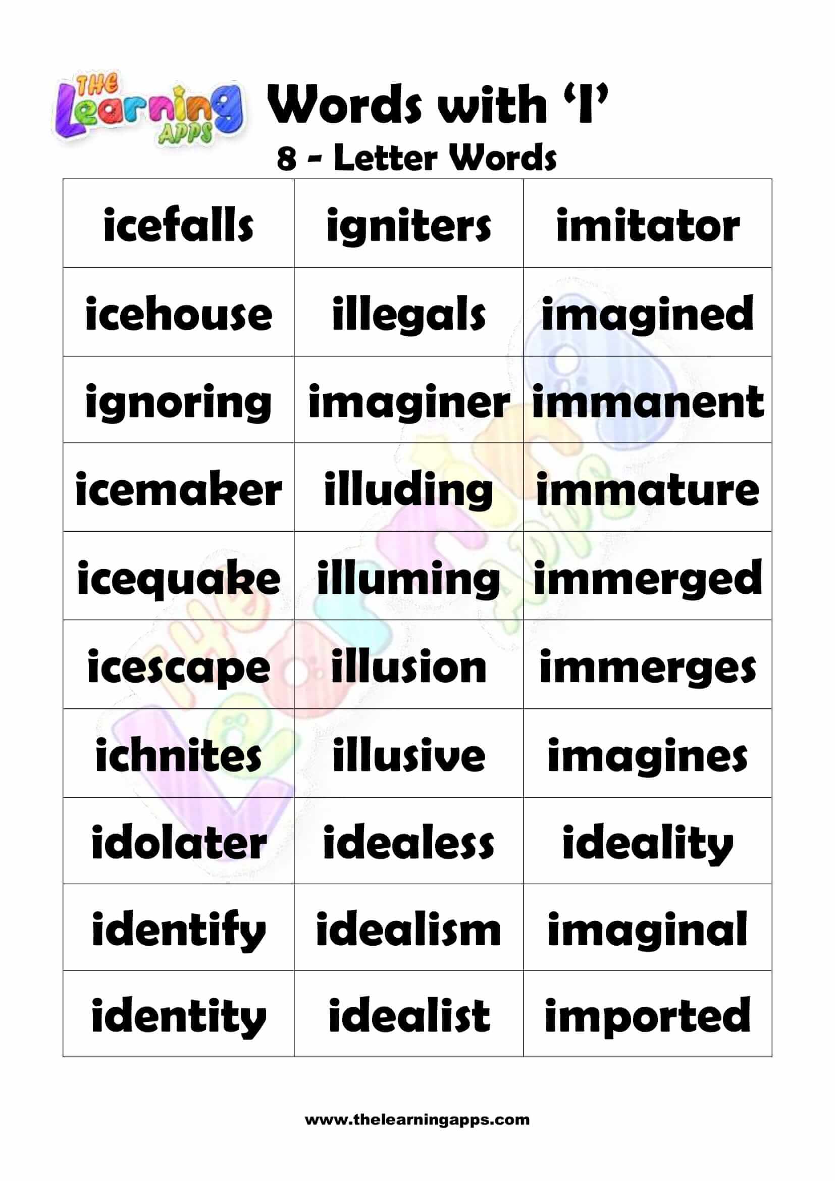 Download fergees printbere wurden fan 8 letters dy't begjinne mei I. Stel bern foar mei dizze Alfabet-wurkblêden foardat se begjinne mei harren oplieding. Besykje no It is fergees!