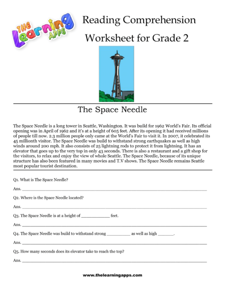 Download ús fergese printbere wurkblêden foar begripen foar klasse 2 beskikber. It wurkblêd Space Needle Comprehension is ien fan 'e bêste manieren om jo bern te belûken by it learen.