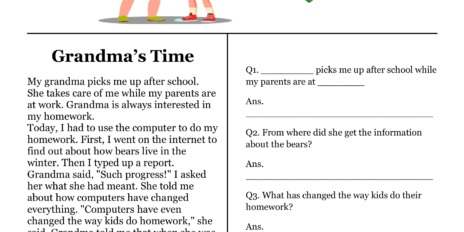 Download our free printable comprehension worksheets for grade 3. Grandma’s Time Comprehension Worksheet is one of the best way to engage your child in learning.
