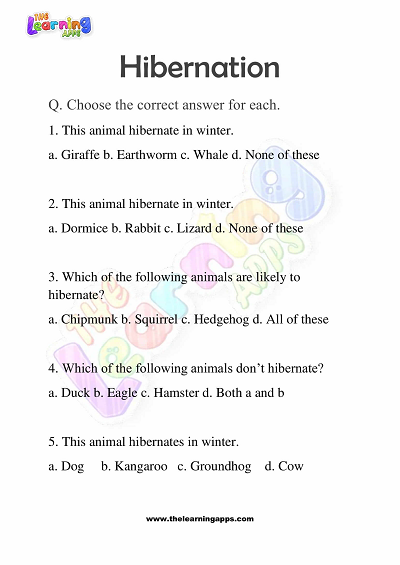 Click on the download button and get the Hibernation Worksheet for Grade 2. The hibernation Worksheet helps us learn about the fascinating phenomenon of animal hibernation. This educational resource provides information and activities to engage students in understanding how particular creatures adapt to harsh weather conditions by going into a deep sleep-like state. Through this worksheet, students can explore the science behind hibernation and the various animals that undergo this incredible natural process.
