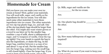 Homemade Ice Cream Comprehension WorksheetView All Activities