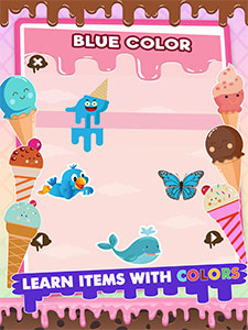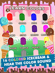 - Learn Colors: Consists ice cream in 16 colors. Tap on any ice-cream and hear its color name.