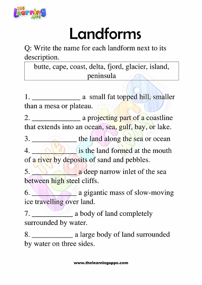Landforms Worksheets for Grade 3 – Activity 8 View All Worksheets
