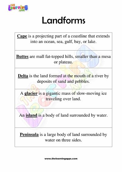 Landforms Worksheets for Grade 3 – Activity 9 View All Worksheets
