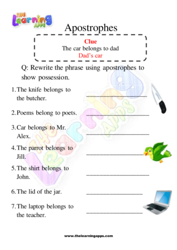 Click on the download button and get this free apostrophe worksheet 05. Dësen Aarbechtsblat hëlleft Kanner e Basisverständnis ze entwéckelen, wéi een mëndlech oder a schrëftlech Form de Besëtz vu jidderengem, deen duerch 's markéiert ass, auszedrécken. Klickt op den Download Knäppchen a kritt dëst gratis Apostroph Aarbechtsblat, a maacht d'Léieren lëschteg, spannend an engagéierend.