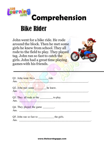 Bike Rider Comprehension ເບິ່ງແຜ່ນວຽກທັງໝົດ