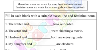 Masculine and feminine worksheets for kids are now available on The Learning App. Download Masculine and Feminine Worksheet 12 for kids to teach about gender studies with ease and in the most interesting way possible. This printable worksheet lets kids have fun while learning.