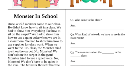 Download our free printable comprehension worksheets for grade 3. Monster In School Comprehension Worksheet is one of the best way to engage your child in learning.