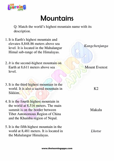Mountains Worksheets for Grade 3 – Activity 4 View All Worksheets