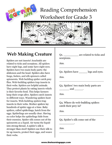 Muat turun lembaran kerja pemahaman boleh cetak percuma kami untuk gred 3. Lembaran Kerja Pemahaman Makhluk Membuat Web ialah salah satu cara terbaik untuk melibatkan anak anda dalam pembelajaran.