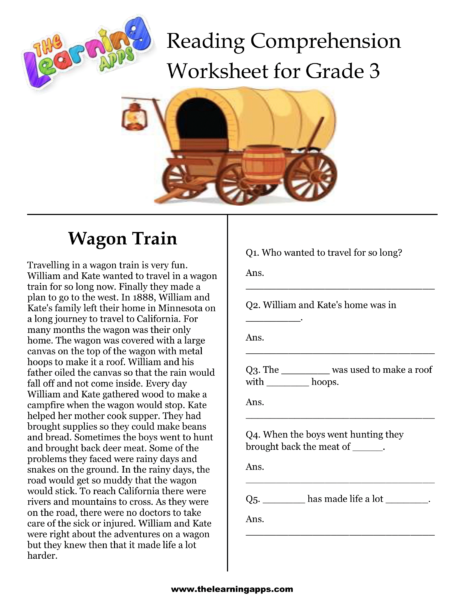 3 တန်းအတွက် ကျွန်ုပ်တို့၏ အခမဲ့ ပုံနှိပ်နိုင်သော နားလည်နိုင်မှု စာရွက်များကို ဒေါင်းလုဒ်လုပ်ပါ။ Wagon Train Comprehension Worksheet သည် သင့်ကလေးအား သင်ယူမှုတွင် ဆွဲဆောင်ရန် အကောင်းဆုံးနည်းလမ်းတစ်ခုဖြစ်သည်။