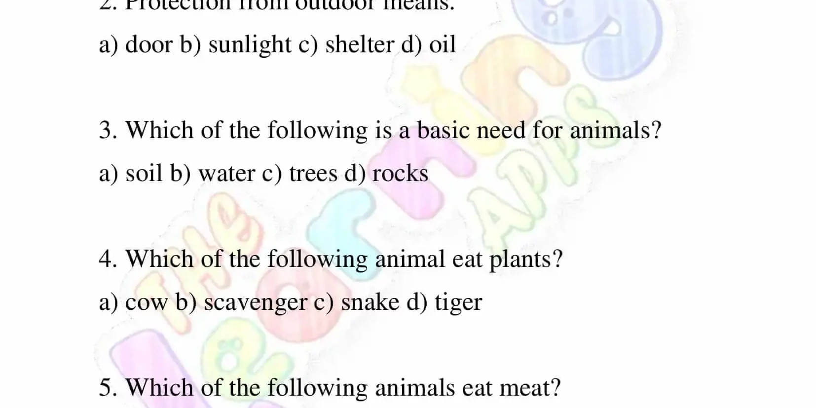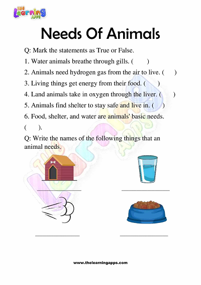 Needs of Animals Worksheets for Grade 3