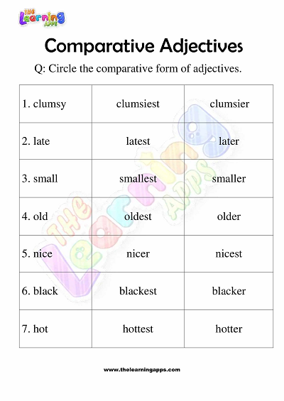 Komparative adjektiver kan være vanskelig grammatikk for 3. klassinger hvis de ikke øves og læres riktig. Derfor gir vi i læringsappene deg arbeidsark med komparative adjektiver for 3.-klassinger for å hjelpe dem med å erobre ferdighetene og metoden for å utføre komparative adjektiverspørsmål.