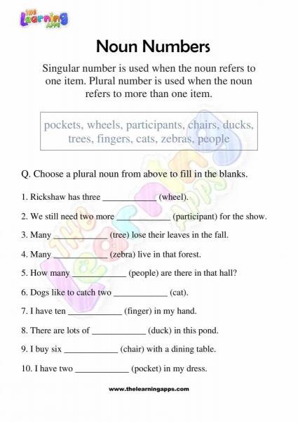 Noun Numbers Worksheets For 3rd Grade