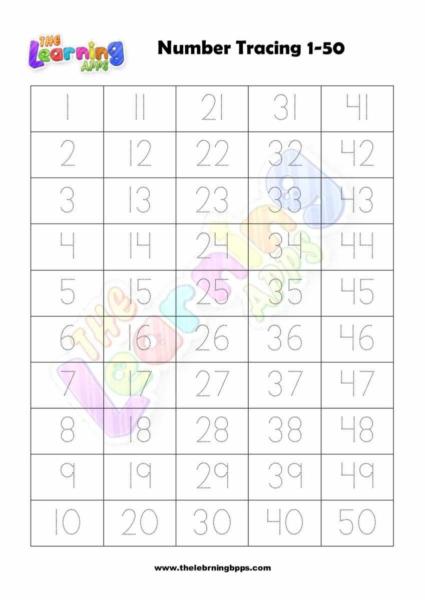 Here you will have an educational and free printable worksheet of number tracing 1-50 for kids. By doing these worksheets, kids will learn how to write all numbers in a fun and interactive way. Hit the download button and let the learning begin!