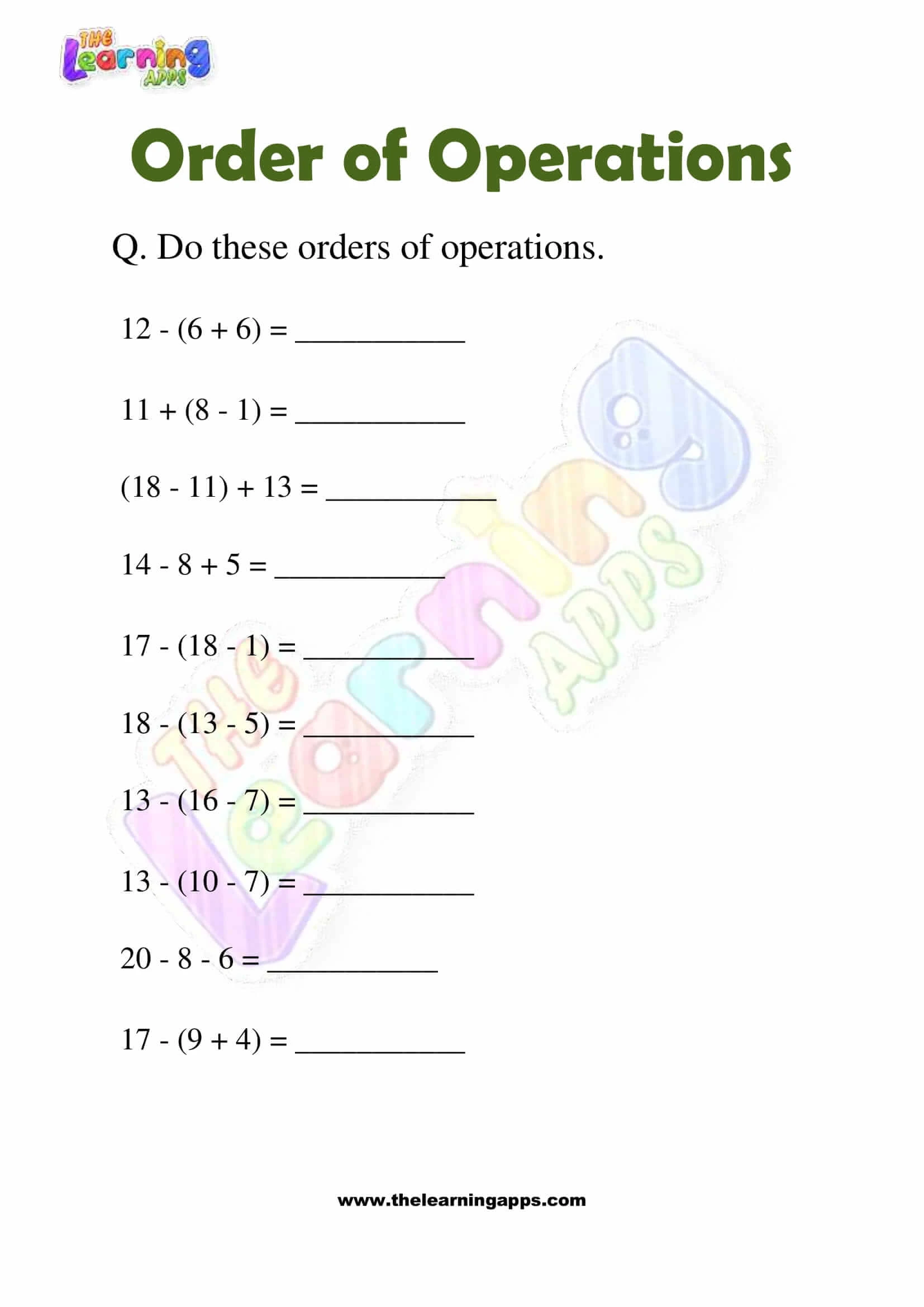 Order of Operations Worksheets – Grade 3 – Activity 1 View All Worksheets
