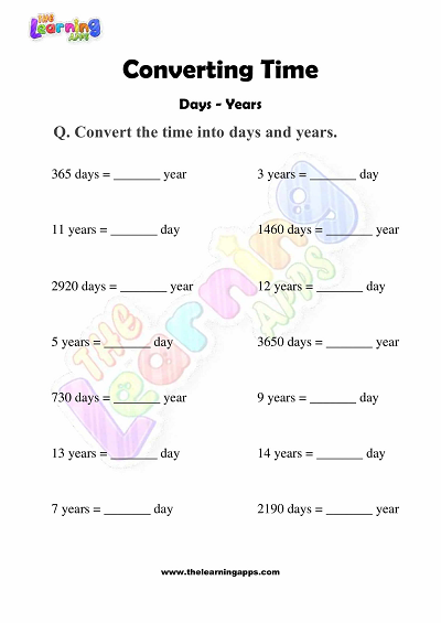 ਇੱਥੇ ਤੁਸੀਂ ਵੱਖ-ਵੱਖ ਸਮਾਂ ਪਰਿਵਰਤਨ ਵਰਕਸ਼ੀਟਾਂ ਲੱਭ ਸਕਦੇ ਹੋ ਜੋ ਪਰਿਵਰਤਨ 'ਤੇ ਤੁਹਾਡੇ ਅਭਿਆਸ ਨੂੰ ਵਧਾਏਗਾ ਦਿਨ ਤੋਂ ਸਾਲ, ਦਿਨ ਤੋਂ ਹਫ਼ਤਿਆਂ, ਘੰਟੇ ਤੋਂ ਦਿਨ ਅਤੇ ਹੋਰ ਬਹੁਤ ਕੁਝ। ਵਰਕਸ਼ੀਟਾਂ ਨੂੰ ਤੀਸਰੇ ਗ੍ਰੇਡ ਦੇ ਵਿਦਿਆਰਥੀ ਦੀਆਂ ਯੋਗਤਾਵਾਂ ਨੂੰ ਧਿਆਨ ਵਿੱਚ ਰੱਖਦੇ ਹੋਏ ਤਿਆਰ ਕੀਤਾ ਗਿਆ ਹੈ। ਟਾਈਮ ਵਰਕਸ਼ੀਟ ਲਈ ਛਪਣਯੋਗ ਪਰਿਵਰਤਨ ਅੱਜ ਹੀ ਡਾਊਨਲੋਡ ਕਰੋ!
