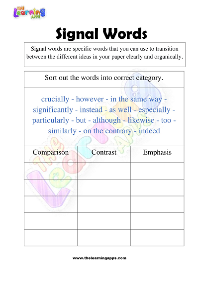 Download our Signal Words Worksheets for Grade 1 Activity 3 and make learning a blast! These engaging worksheets are designed to help young learners understand and use signal words effectively. With colorful visuals and interactive activities, your child will master words like “first,” “next,” and “finally” in no time. Get ready for a fun-filled learning adventure!