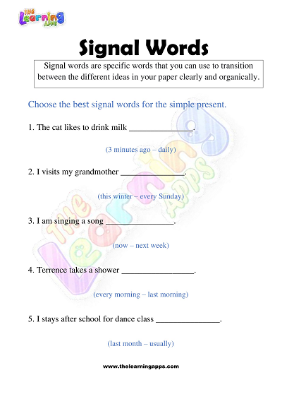 Signal Words Worksheets for Grade 3 – Activity 6 View All Worksheets