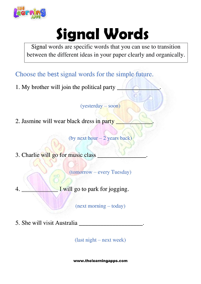 Signal Words Worksheets for Grade 3 – Activity 7 View All Worksheets