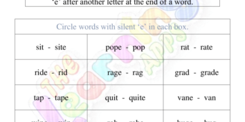 Views: 3,886 Silent E 04 View All Activities Download Silent E worksheet 04 for kids to improve their skills. The silent E rule is one of the most essential rules of English learning. It helps children comprehend how to blend words and pronounce them properly without hesitating. Download View Share This Related PostsSilent E Worksheet 10June 28, 2022Silent E Worksheet 09June 28, 2022Silent E Worksheet 08June 28, 2022Silent E Worksheet 07June 28, 2022Silent E Worksheet 06June 28, 2022Silent E Worksheet 05June 28, 2022