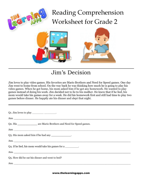 Ladda ner våra gratis utskrivbara arbetsblad för förståelse för årskurs 2 tillgängliga. Jims arbetsblad för beslutsförståelse är ett av de bästa sätten att engagera ditt barn i lärandet.