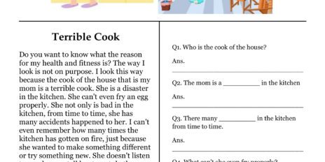 Download our free printable comprehension worksheets for grade 3. Terrible Cook Comprehension Worksheet is one of the best way to engage your child in learning.