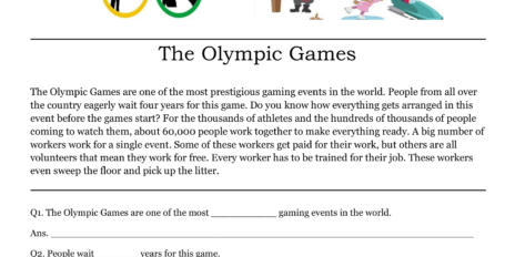 Download our free printable comprehension worksheets for grade 2 available. The Olympic Games Comprehension worksheet is one of the best way to engage your child in learning.