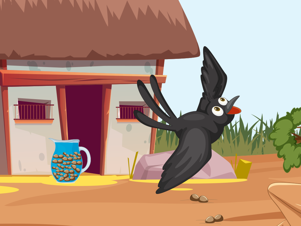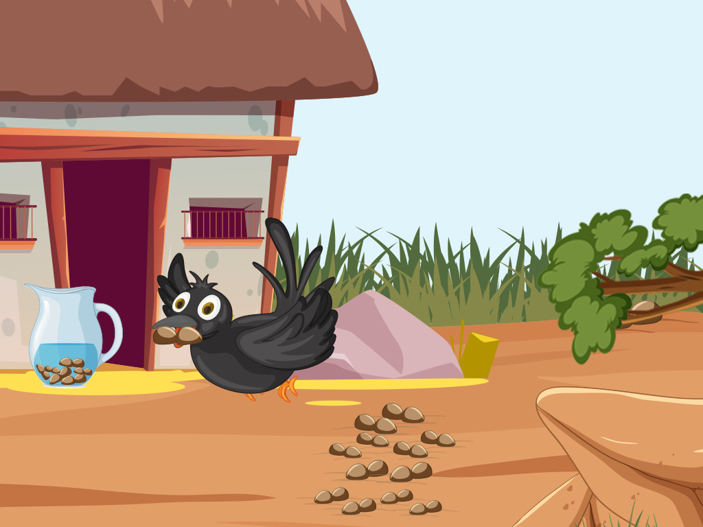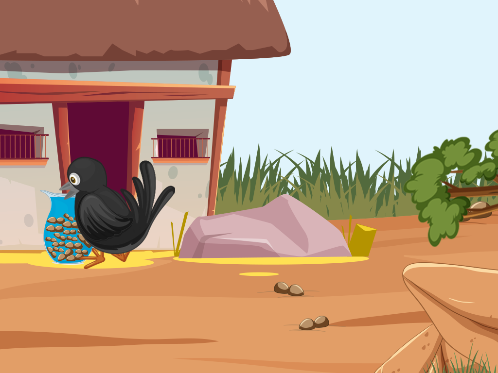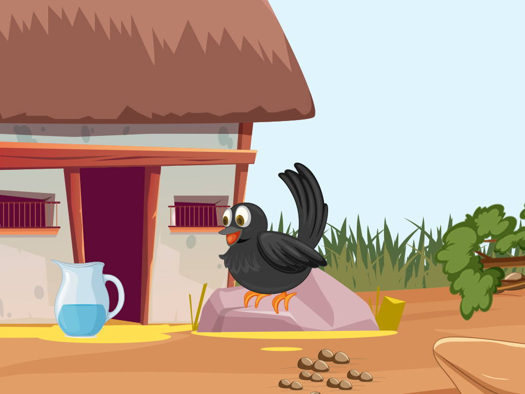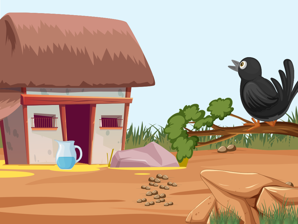 Kiki, a thirsty crow, resided in a parched and desolate area. She had flown for miles looking for water, but the heat had worn her out, and now she was dehydrated. She looked everywhere but came up empty-handed.