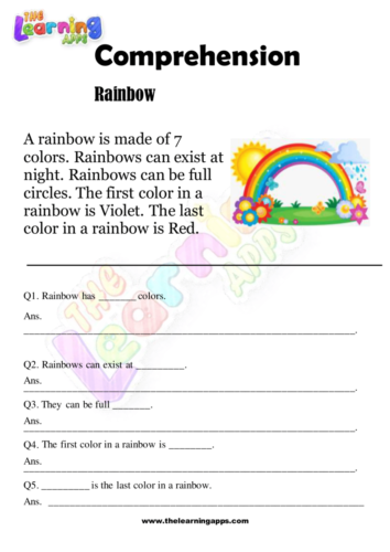 1-sinf uchun bepul chop etiladigan tushunish ishchi varaqlarimizni yuklab oling. Kamalakni tushunish varaqasi oโqishni tushunishni oโrganayotgan barcha bolalar uchun eng yaxshi varaqlardan biridir.