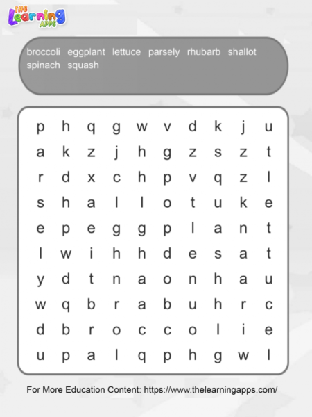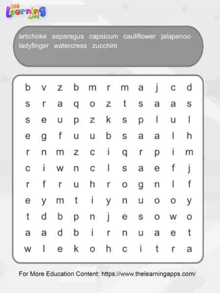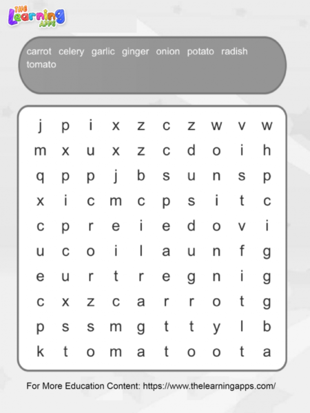 We have a collection of vegetable word search printables for different vegetables for all types of kids including toddlers, kindergarten and preschool children. It’s important to polish reading and vocabulary skills in kids which requires a plenty of patience along with practice initially. It is the best way to make a child able to know more about vegetables. There are multiple sheets where you will find of vegetable word search printable for kids. Download and get your kids favourite vegetable word search worksheets online for free to draw his attention.