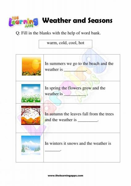 Given that the seasons change and you can’t show your child snow in the summer, teaching kids about the seasons can be a little more challenging. These weather and seasons worksheets are fortunately available to demonstrate to young children what the seasonal change looks like.These weather and seasons worksheets are easily available on The Learning Apps. weather and seasons worksheets are available to download and print on any PC, iOS, or Android device without any additional charges. So try out the weather and seasons worksheets today and give a boost to your fun learning experience.