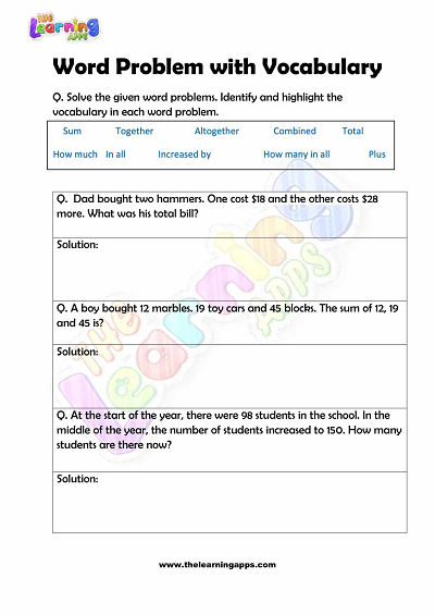 Word Problem with Vocabulary Worksheets – Grade 2 – Activity 4 View All Worksheets